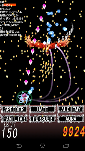 ・画面のどこでもタッチしながら移動させると自機が移動します。(登場中は操作できません)