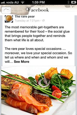 The rare pear fine food cafe app is excited to give our loyal customers access to our loyalty programs; events calendar, breakfast and lunch fine food menus, catering menus and our gallery. Quickly and easily make reservations, call or email us, get directions on the go, subscribe to our newsletter, post images to the fan wall or jump to our facebook and web page