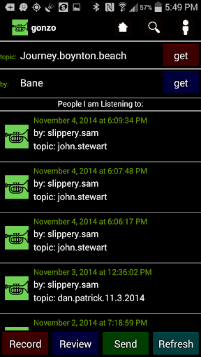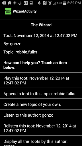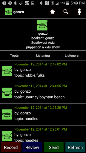 1) Press the toot (represented by the timestamp in the list box) to play the toot.
