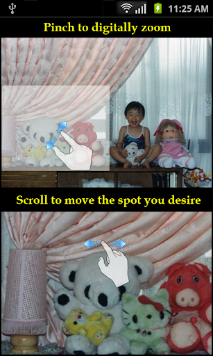 ▶ Pinch to digitally zoom for any part of the display screen that the user desires
