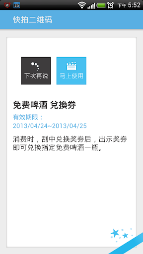 使用介绍: 使用者拍摄指定商品,或在合作商家扫描uFansbook二维码,成为uFansbook正式会员后,再扫描合作商家二维码,系统将在5秒内回传刮乐电子券一张,刮开后有惊喜大奖!