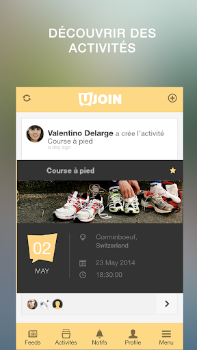uJoin est très facile d’utilisation. Il te suffit de te créer un compte gratuitement et le tour est joué! Ensuite tu seras automatiquement connecté à toutes les personnes de ta région. Rejoins les activités de ton intérêt ou propose les tiennes et commence immédiatement de nouvelles rencontres avec tes voisins! N’est-ce pas excellent de s’éclater avec des gens partageant des intérêts communs?