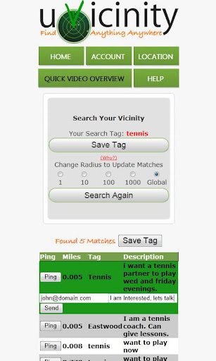 Although location can be obtained via ip address or zip code, Uvicinity works best with GPS enabled devices.