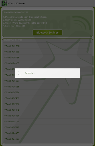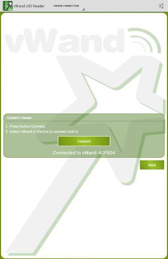 The vWand UID Reader is an easy to use application for your Android tablet or smartphone that reads the UID from NFC tags with the vWand and inserts the data as text, wherever you have the cursor (database form field, web form field, a spreadsheet, text processor document, notes, e-mail, etc).