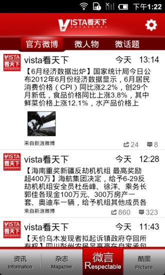 Vista看天下是中国期刊市场上,唯一面向高消费人群的新闻类杂志,也是全球华文媒体BPA认证市场发行量最大的新闻期刊我们立志做中国最好看的新闻杂志,通过最犀利、最好看的新闻角度,为您呈现不一样的故事内涵,杂志的内容主要涵盖中国、环球、封面故事、财经、社会、娱乐、文化、生活、专栏等领域,将过去10天发生在全球的最精彩故事呈送给广大读者