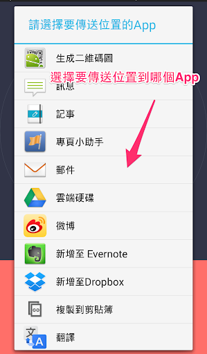 只要打開where,點選「Share」就可以透過各app分享位置,朋友收到訊息後,可以直接打開google map並進行導航!