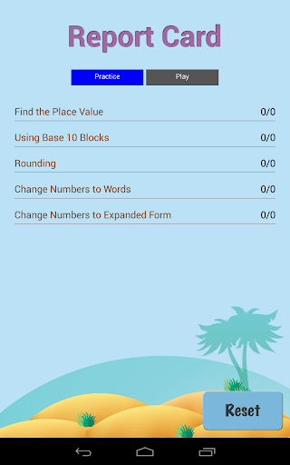 * Report Card shows progress by skills for both practice and play modes.